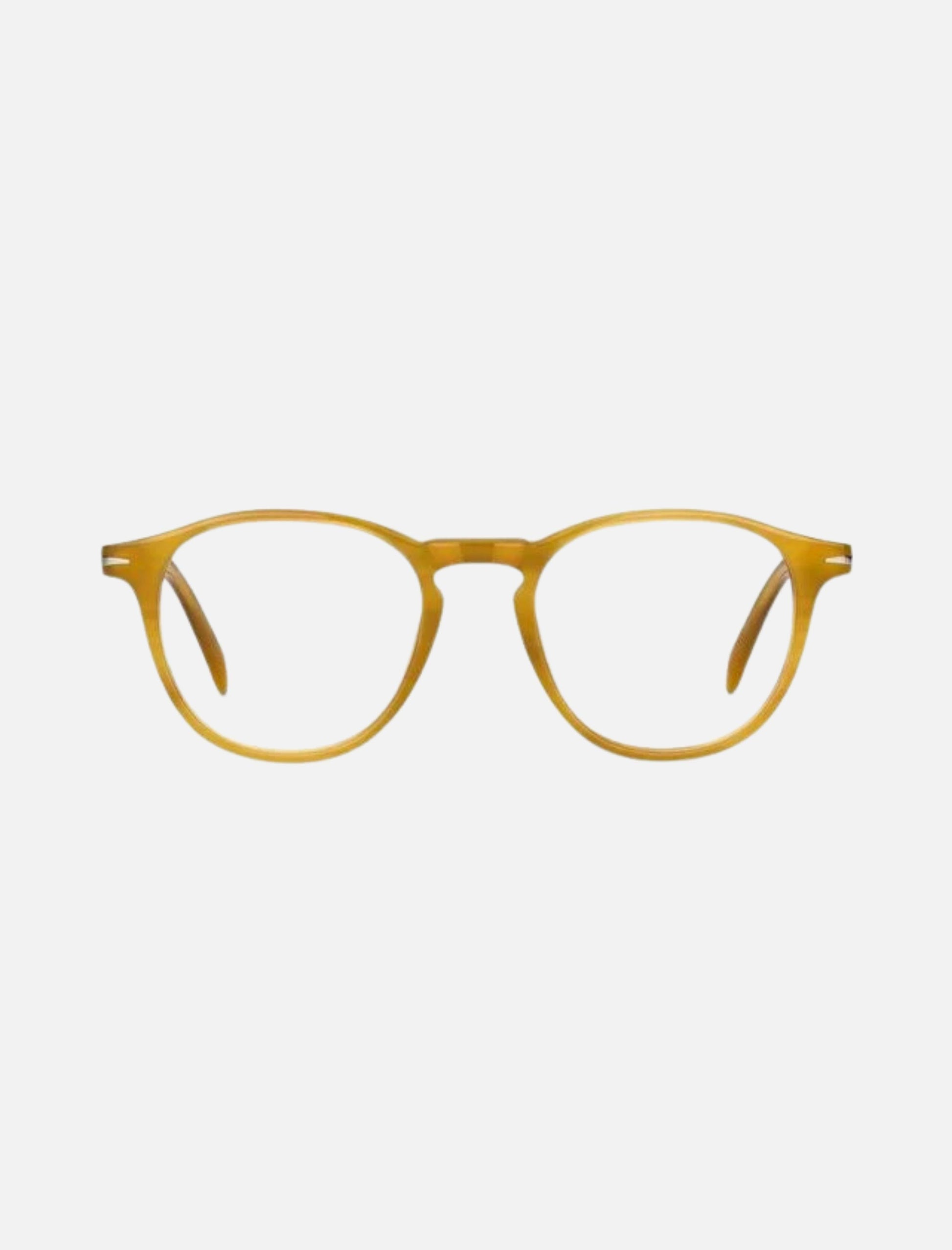 Las gafas ópticas de David Beckham, combinan el atractivo británico con un estilo contemporáneo. Estas gafas con montura de panto redonda, están elaboradas en acetato en tono miel
