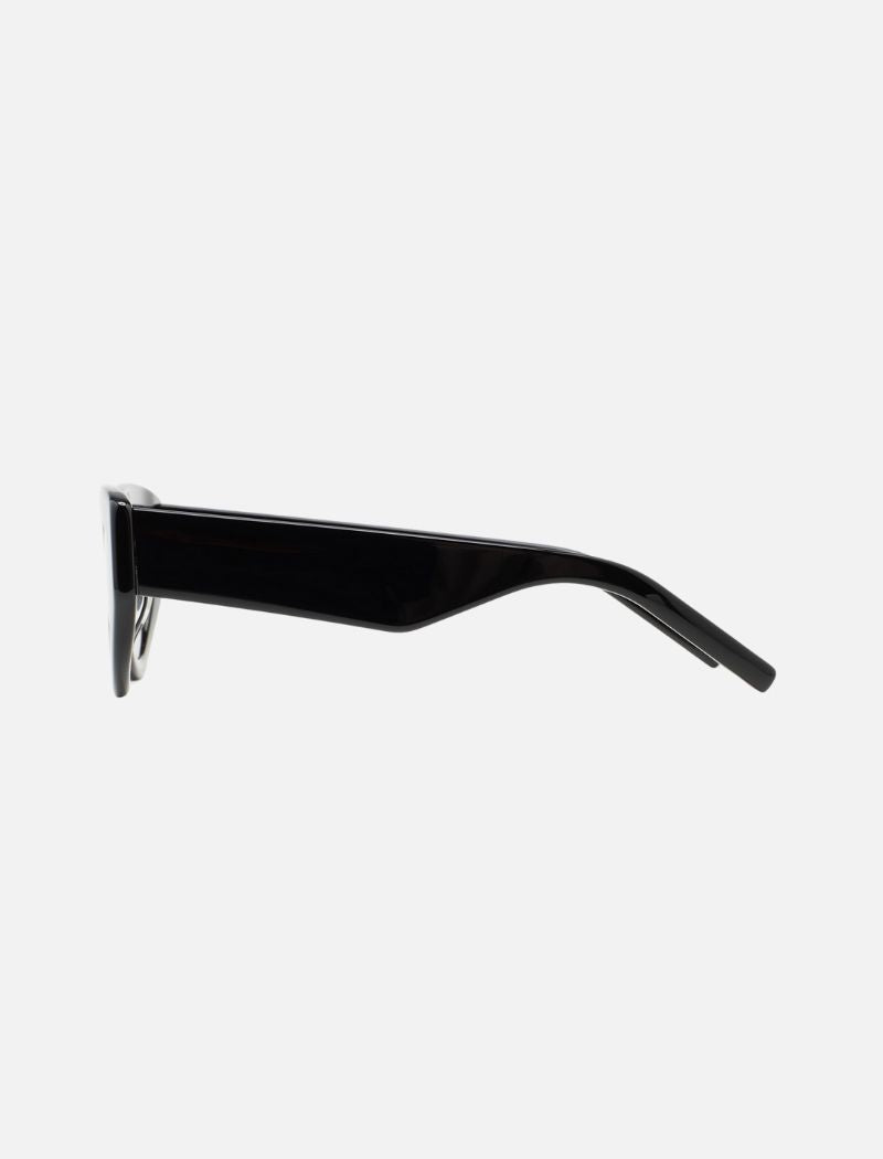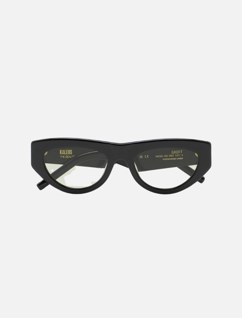 Gafas de sol con diseño de ojo de gato, elegantes y sofisticadas. Montura y patillas de acetato negro, con patillas curvadas para un ajuste cómodo. Lentes fotocromáticas verdes, base 2, que ofrecen protección UV y cuentan con un tratamiento antirreflejante. Lentes de categoría 1-3, adaptándose a diferentes condiciones de luz. Plaquetas nasales integradas de acetato para mayor confort. Fabricadas a mano con detalles artesanales.